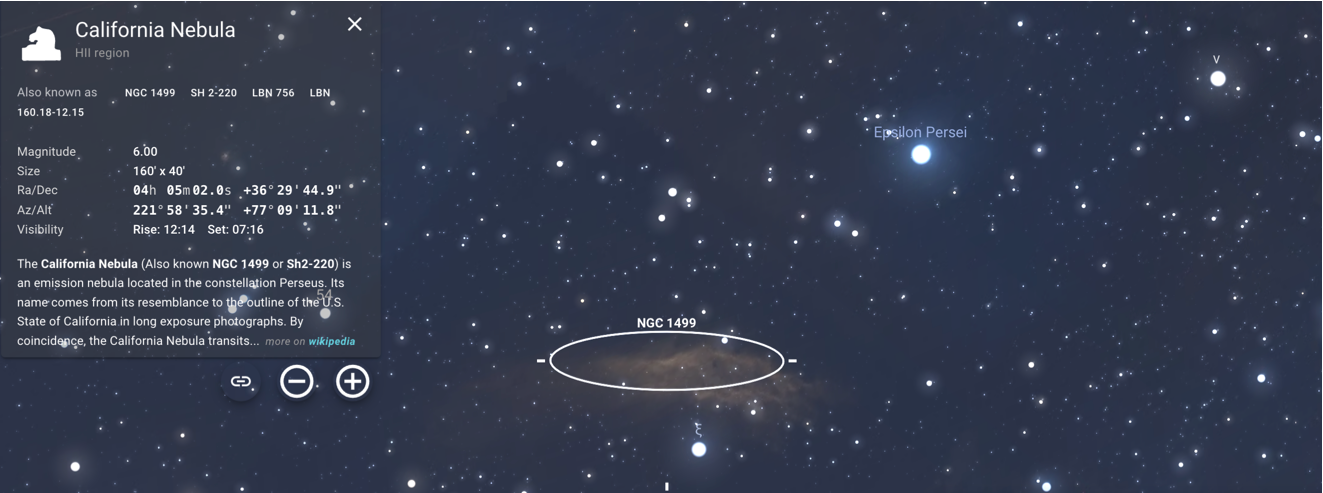 The California Nebula on Stellarium: